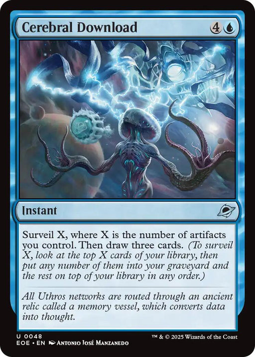 Edge of EternitiesRarity: U #: 48 Creature Type or Sub Type: Instant Rules Text Contains: Surveil X, where X is the number of artifacts you control. Then draw t...