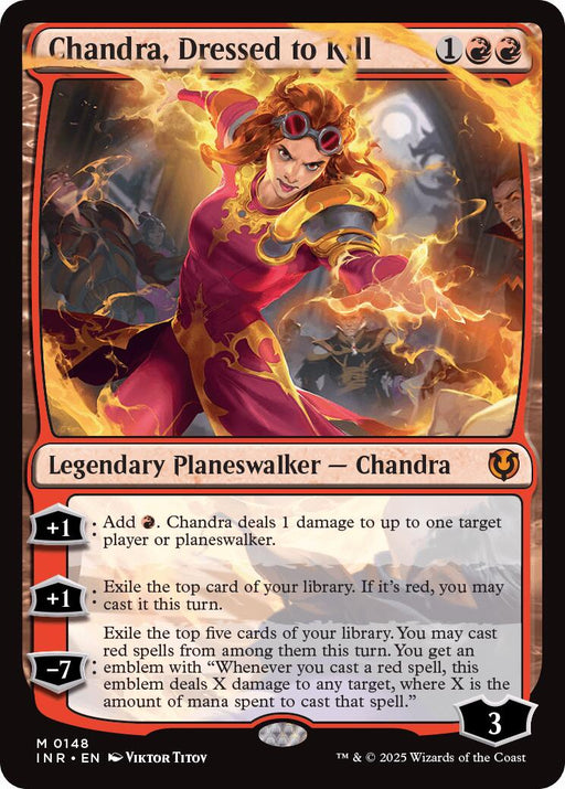 Innistrad: Crimson VowRarity: M #: 279 Creature Type or Sub Type: Legendary Planeswalker — Chandra Rules Text Contains: [+1]: Add R. Chandra, Dressed to Kill deals ...