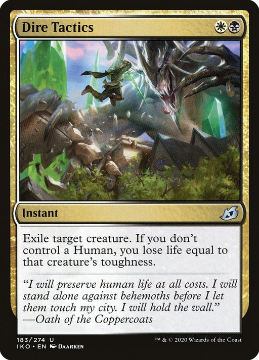 Ikoria: Lair of BehemothsRarity: U #: 183 Creature Type or Sub Type: Instant Rules Text Contains: Exile target creature. If you don't control a Human, you lose life eq...