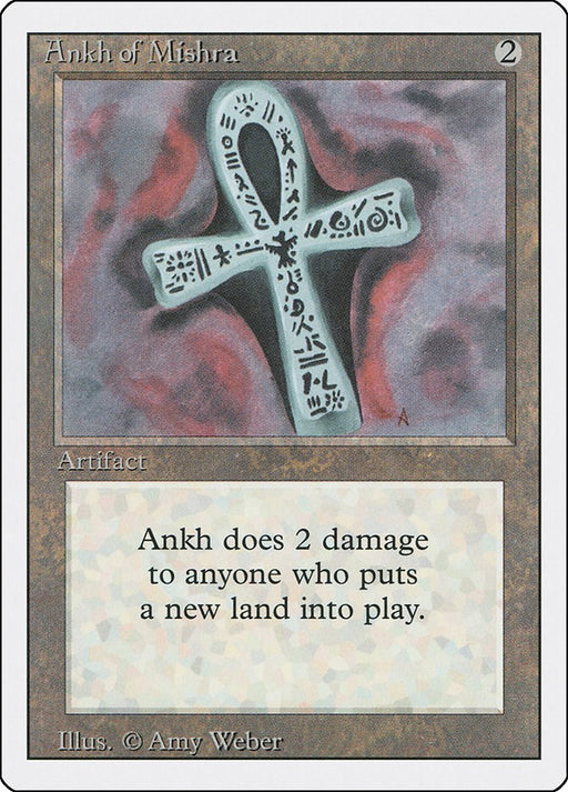 Revised EditionRarity: R Creature Type or Sub Type: Artifact Rules Text Contains: Ankh does 2 damage to anyone who puts a new land into play.