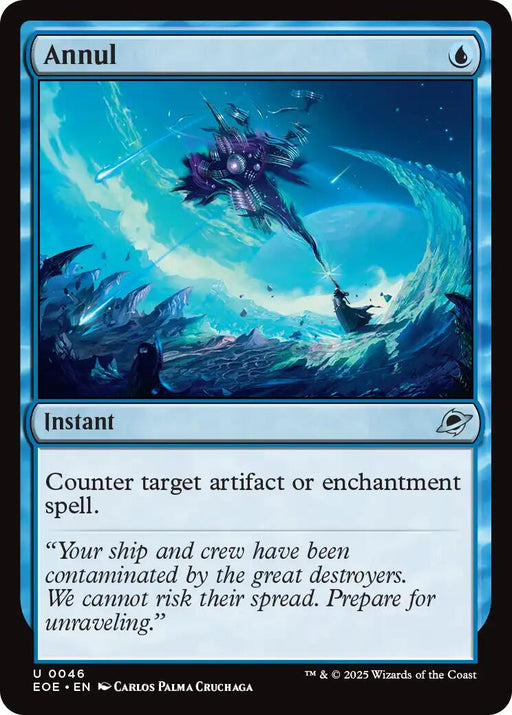Edge of EternitiesRarity: U #: 46 Creature Type or Sub Type: Instant Rules Text Contains: Counter target artifact or enchantment spell. Flavor: "Your ship and ...