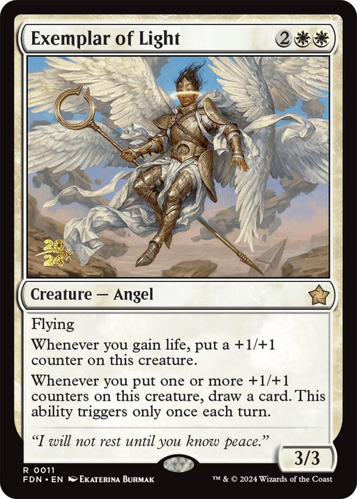 FoundationsRarity: R #: 11 Creature Type or Sub Type: Creature — Angel P: 3 T: 3 Rules Text Contains: Flying Whenever you gain life, put a +1/+1 coun...