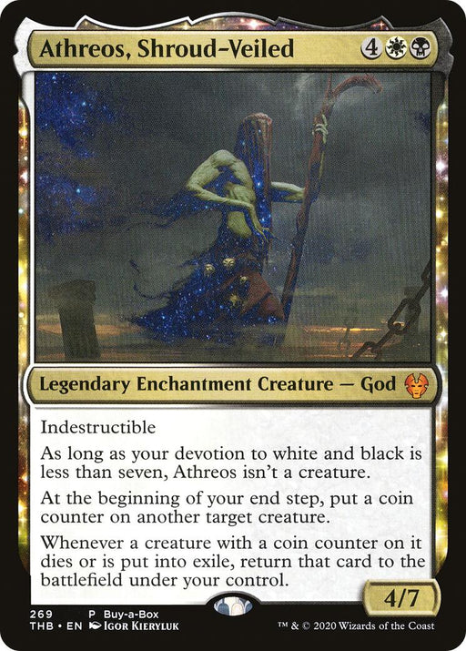 Buy-A-Box PromosRarity: P #: 269 Creature Type or Sub Type: Legendary Enchantment Creature — God P: 4 T: 7 Rules Text Contains: Indestructible As long as y...