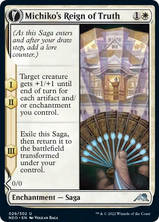Kamigawa: Neon DynastyRarity: U #: 29 Creature Type or Sub Type: Enchantment — Saga // Enchantment Creature — Human Noble P: 0 T: 0 Rules Text Contains: (As this ...