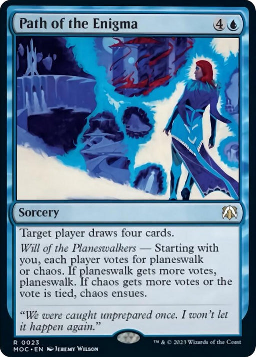 Commander: March of the MachineRarity: R #: 23 Creature Type or Sub Type: Sorcery Rules Text Contains: Target player draws four cards. Will of the Planeswalkers — Starting ...