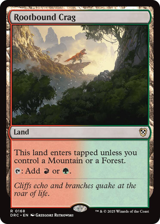 The List ReprintsRarity: R #: 227/249 Creature Type or Sub Type: Land Rules Text Contains: Rootbound Crag enters the battlefield tapped unless you control a Mo...