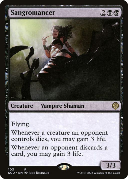 Starter Commander DecksRarity: R #: 103 Creature Type or Sub Type: Creature — Vampire Shaman P: 3 T: 3 Rules Text Contains: Flying Whenever a creature an oppone...