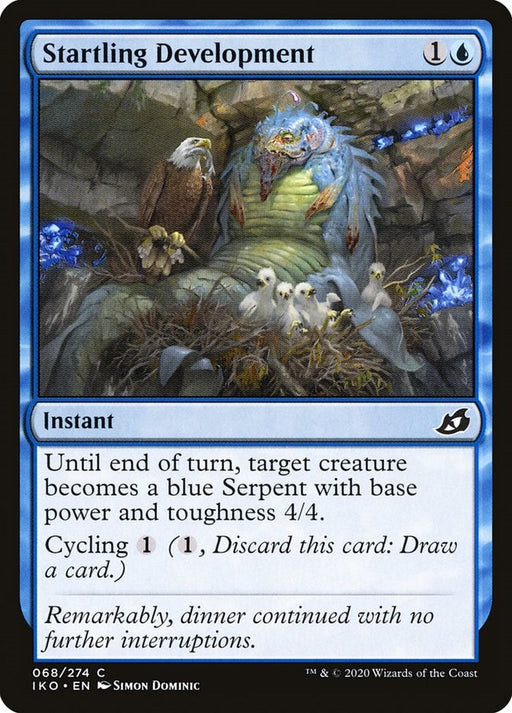 Ikoria: Lair of BehemothsRarity: C #: 68 Creature Type or Sub Type: Instant Rules Text Contains: Until end of turn, target creature becomes a blue Serpent with base po...