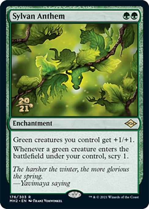 Modern Horizons 2Rarity: R #: 176 Creature Type or Sub Type: Enchantment Rules Text Contains: Green creatures you control get +1/+1. Whenever a green creature...