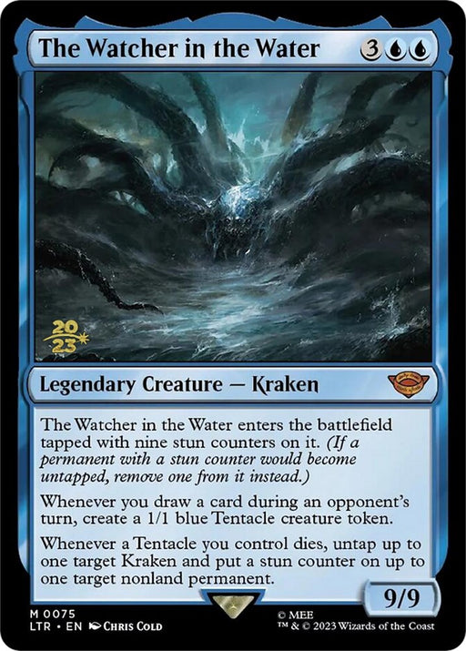 Universes Beyond: The Lord of the Rings: Tales of Middle-earthRarity: M #: 75 Creature Type or Sub Type: Legendary Creature — Kraken P: 9 T: 9 Rules Text Contains: The Watcher in the Water enters the ba...