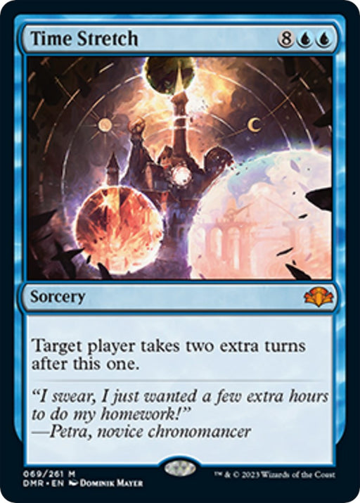 Dominaria RemasteredRarity: M #: 69 Creature Type or Sub Type: Sorcery Rules Text Contains: Target player takes two extra turns after this one. Flavor: "I swear,...