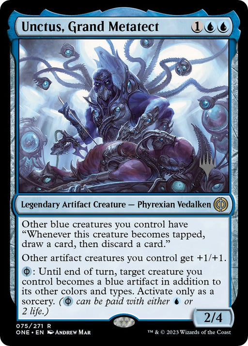 Promo Pack: Phyrexia: All Will Be OneRarity: R #: 75 Creature Type or Sub Type: Legendary Artifact Creature — Phyrexian Vedalken P: 2 T: 4 Rules Text Contains: Other blue creatu...