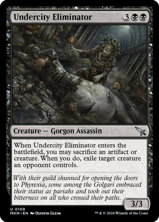 Murders at Karlov ManorRarity: U #: 108 Creature Type or Sub Type: Creature — Gorgon Assassin P: 3 T: 3 Rules Text Contains: When Undercity Eliminator enters the b...