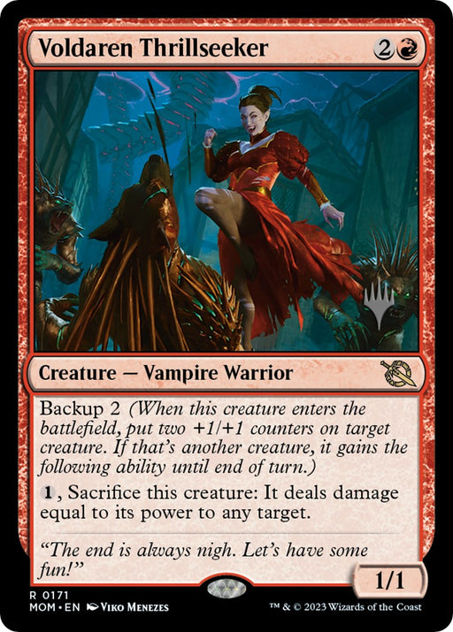 Promo Pack: March of the MachineRarity: R #: 171 Creature Type or Sub Type: Creature — Vampire Warrior P: 1 T: 1 Rules Text Contains: Backup 2 (When this creature enters th...