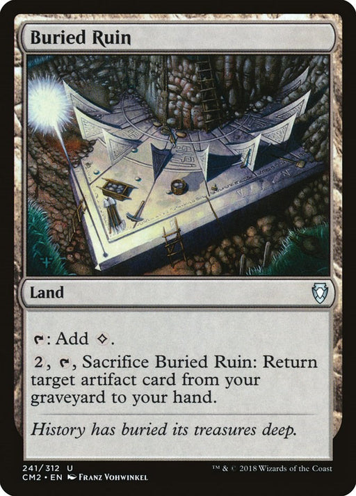 Commander Anthology Volume IIRarity: U #: 241 Creature Type or Sub Type: Land Rules Text Contains: T: Add C. 2, T, Sacrifice Buried Ruin: Return target artifact card from...