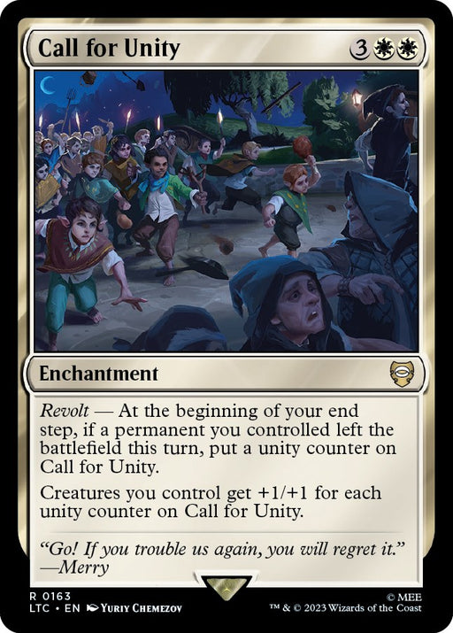 Commander: The Lord of the Rings: Tales of Middle-earthRarity: R #: 163 Creature Type or Sub Type: Enchantment Rules Text Contains: Revolt — At the beginning of your end step, if a permanent you co...
