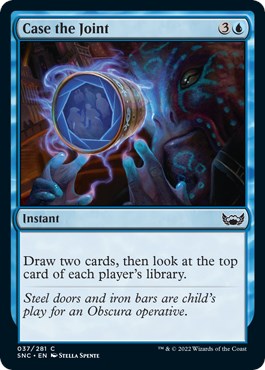 Streets of New CapennaRarity: C #: 37 Creature Type or Sub Type: Instant Rules Text Contains: Draw two cards, then look at the top card of each player's library. F...