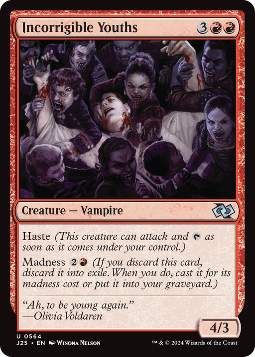 Foundations JumpstartRarity: U #: 564 Creature Type or Sub Type: Creature — Vampire P: 4 T: 3 Rules Text Contains: Haste (This creature can attack and T as soon ...