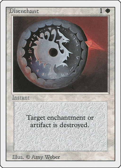 Revised EditionRarity: C Creature Type or Sub Type: Instant Rules Text Contains: Target enchantment or artifact is destroyed.