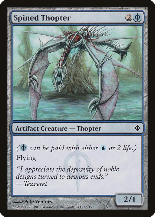 New PhyrexiaRarity: C #: 45 Creature Type or Sub Type: Artifact Creature — Thopter P: 2 T: 1 Rules Text Contains: <em>((U/P) can be paid with eith...