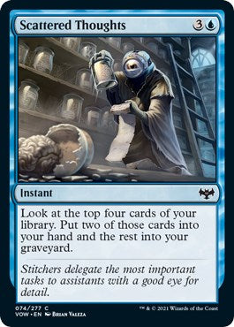 Innistrad: Crimson VowRarity: C #: 74 Creature Type or Sub Type: Instant Rules Text Contains: Look at the top four cards of your library. Put two of those cards int...