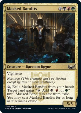 Streets of New CapennaRarity: C #: 201 Creature Type or Sub Type: Creature — Raccoon Rogue P: 5 T: 5 Rules Text Contains: Vigilance Menace (This creature can'...