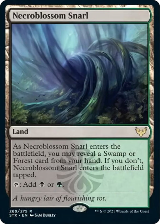Strixhaven: School of MagesRarity: R #: 269 Creature Type or Sub Type: Land Rules Text Contains: As Necroblossom Snarl enters the battlefield, you may reveal a Swamp or ...