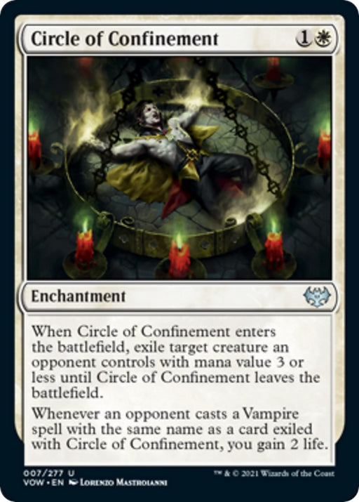 Innistrad: Crimson VowRarity: U #: 7 Creature Type or Sub Type: Enchantment Rules Text Contains: When Circle of Confinement enters the battlefield, exile target cre...