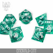 Note: The D4 has a special teardrop shape but rolls normally. Glitter is suspended in a liquid core and will move around while the dice are in motion. The liquid core is hand placed in each shape and may not be perfectly centered.